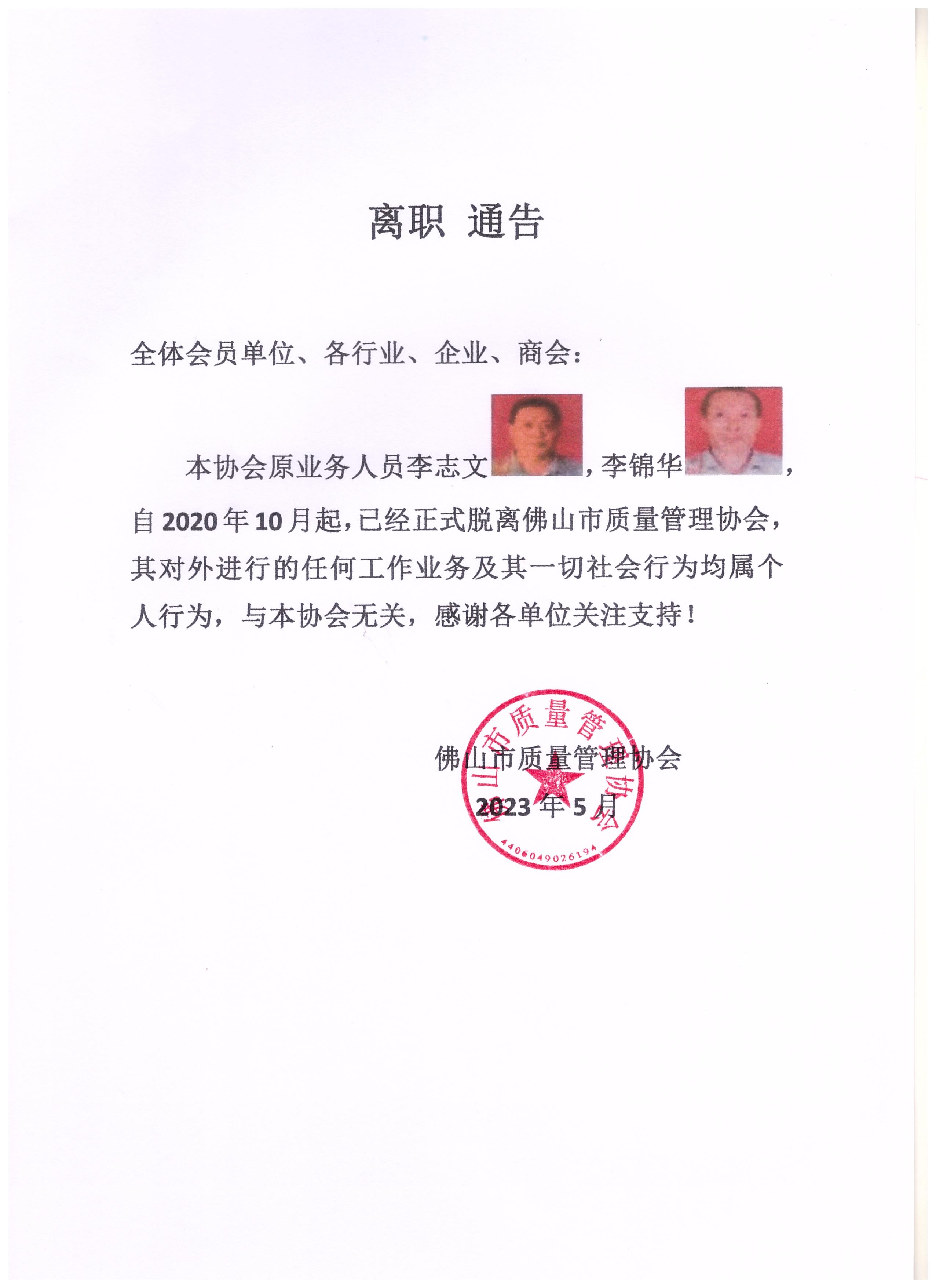 佛山市質(zhì)量管理協(xié)會(huì)開(kāi)展企業(yè)服務(wù)人員公示,供各企業(yè)在接待協(xié)會(huì)服務(wù)人員時(shí)予以核對(duì)。 ...